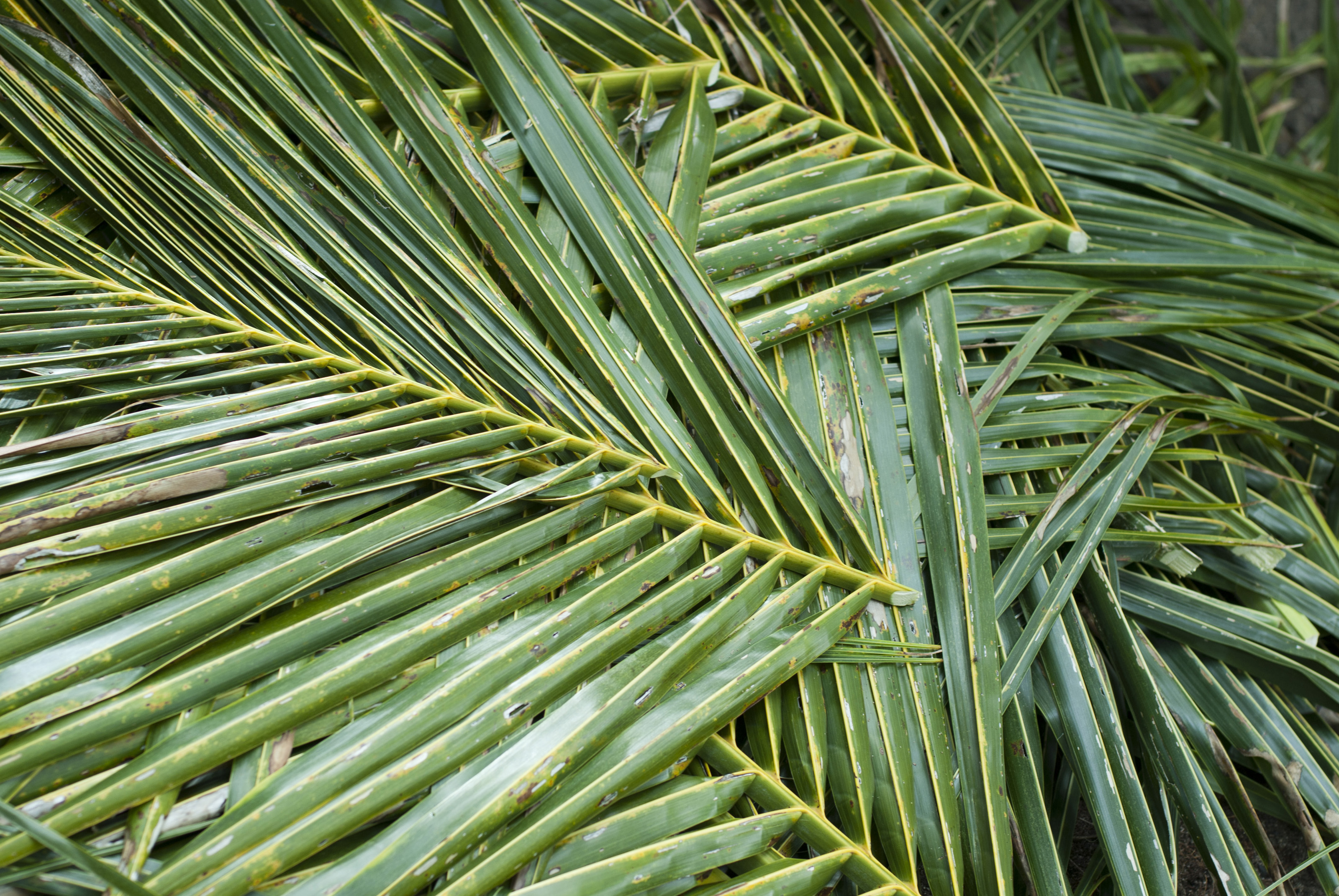 Cut and harvested palm fronds ← Poprzednie Następne → Abstract background of a pile of cut and harvested palm fronds for use in cooking or building